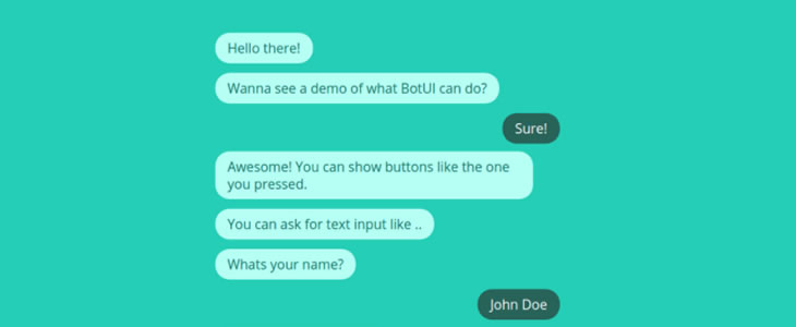 一種建立聊天機器人接口的JavaScript框架。它有一個超級簡單的API,它可以通過添加消息、問題,甚至表單輸入字段來配置會話的流程,以便用戶填寫。 如果你想了解更多關于交互式會話的用戶界面,看看我們的文章介紹開發的聊天機器人。